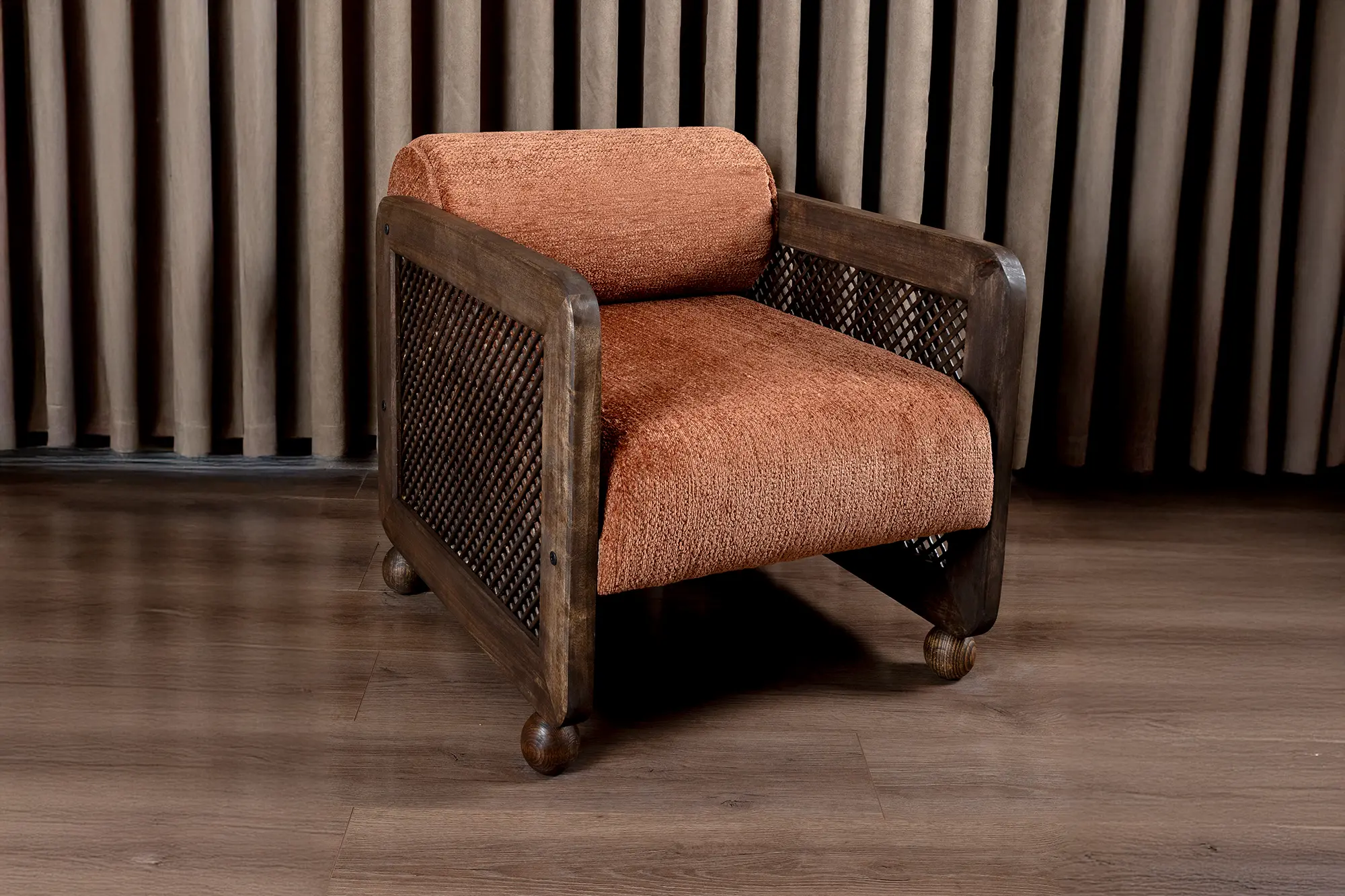 • – Koyu ceviz rengiyle her türlü iç mekan paletine uyum sağlayan bu ürün, turuncu tonlarıyla sıcaklık ve dinginlik hissi yaratıyor.