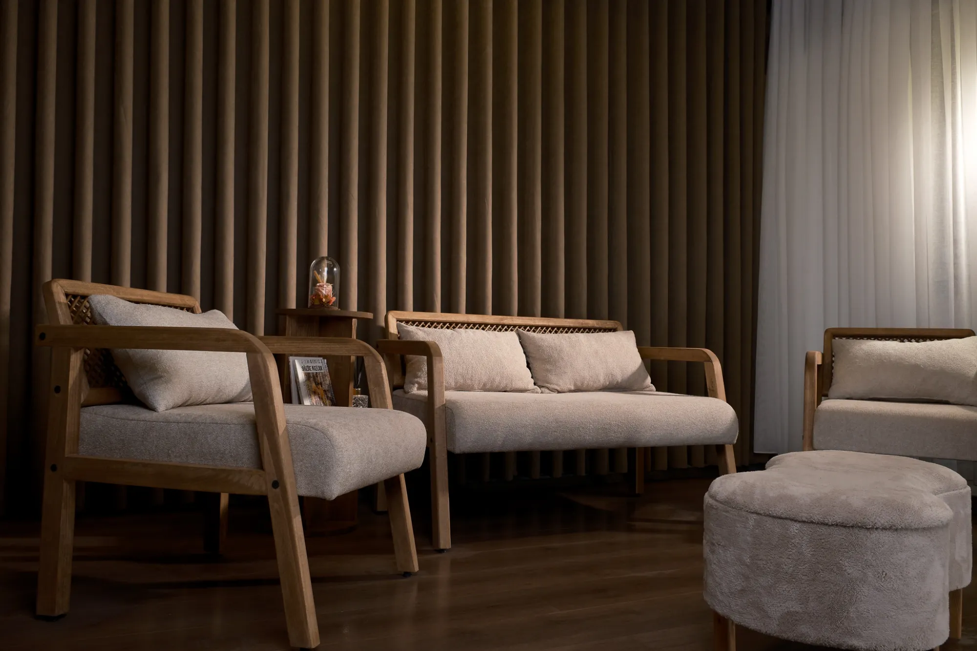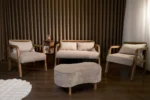 - -İki adet ikili koltuk, bir adet berjer ve sandıklı puf (bench) ile tamamlanan bu takım, konforlu oturma deneyimi sunuyor.